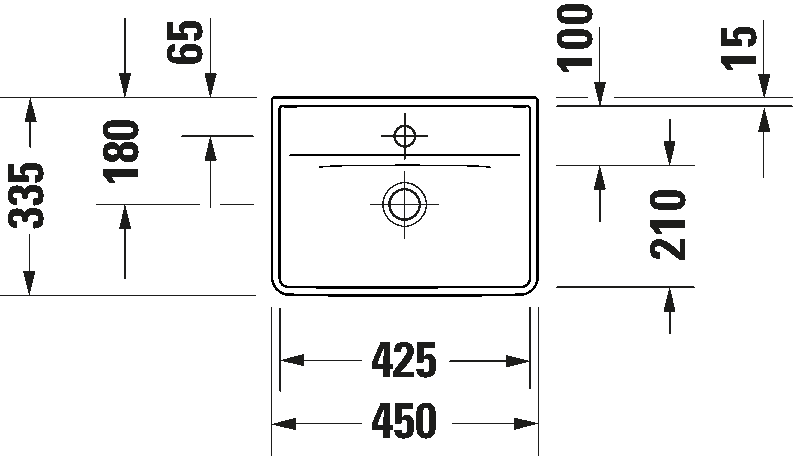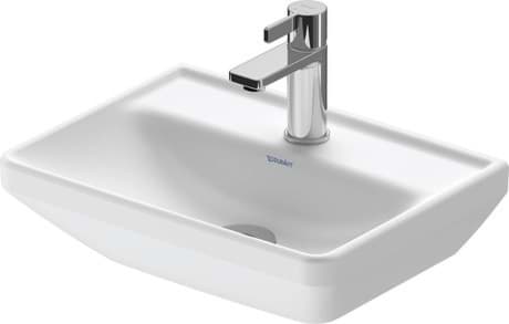 Ausschreibungstext DURAVIT D-Neo, Design by Bertrand Lejoly, Handwaschbecken 450 mm Weiß Hochglanz, Hahnlochbank, Anzahl Hahnlöcher pro Waschplatz: 1, 1 Waschplatz, für 1-Loch-Armaturen geeignet, 1 Becken, wandhängende Montage, komplett von unten glasiert für mehr Hygiene und damit auch perfekt als Einzellösung geeignet, ohne Überlauf, mit Hahnlochbank, aus hochwertiger, langlebiger Sanitärkeramik: besonders widerstandsfähiges, kratzresistentes Material mit hohem Härtegrad, reinigungsfreundlicher und hygienischer Oberfläche, Abmessungen (BxTxHx) 450x335x130 mm, Best. Nr. 0738450041