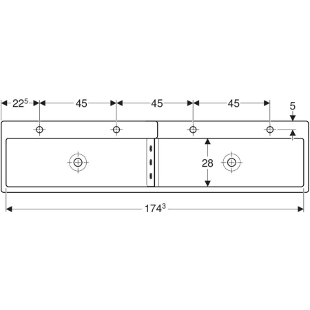 Geberit Bambini Dekorblende Front, für Spiel- und Waschlandschaft, für vier Waschtischarmaturen, tieferes Becken rechts