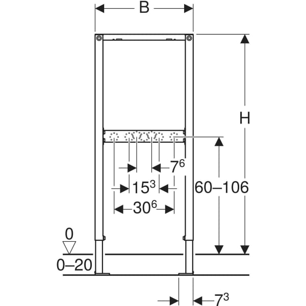 Fußplattentiefe passend zum Einbau in U-Profile UW 50 und UW 75 und Geberit Duofix Systemschienen