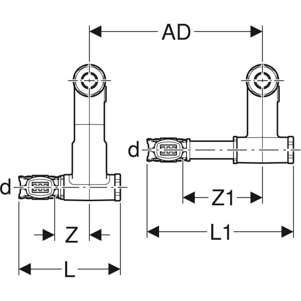 Anschluss-T-Stück mit Anschluss lang