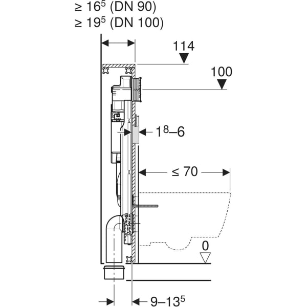 Für Wand-WCs mit Ausladung bis 70 cm
