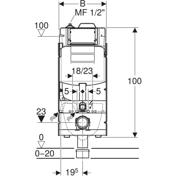 Mit Leerrohr für Wasserzuleitung für Geberit AquaClean Dusch-WCs und für Anschlusskabel