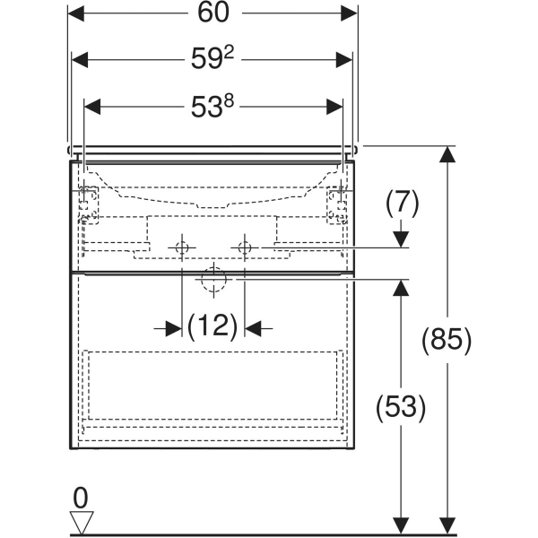 GEBERIT iCon Unterschrank für Waschtisch, mit zwei Schubladen #502.306.01.3 - Korpus und Front: weiß / lackiert matt Griff: weiß / pulverbeschichtet matt