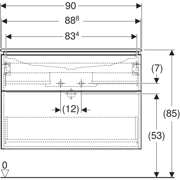 GEBERIT iCon Unterschrank für Waschtisch, mit zwei Schubladen #502.305.01.3 - Korpus und Front: weiß / lackiert matt Griff: weiß / pulverbeschichtet matt