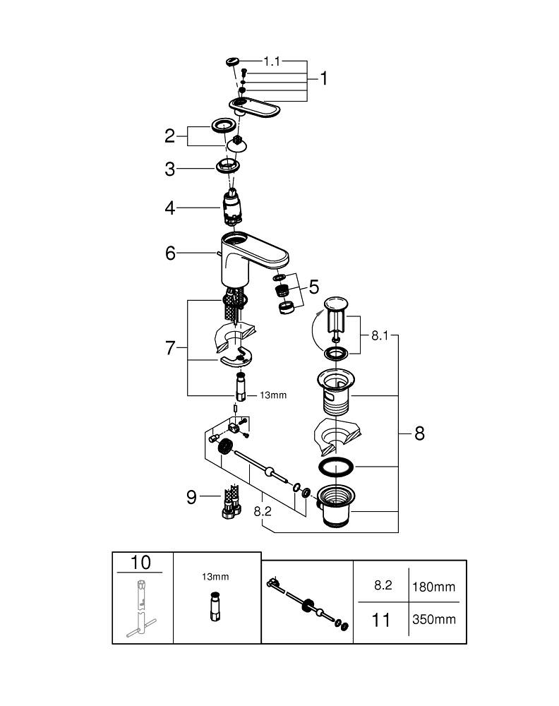 BeschreibungErsatzteile Beschreibung HauptmerkmaleEinlochmontageGROHE SilkMove 28 mm KeramikkartuscheGROHE Long-Life OberflächeSchnell-Montage-SystemSpeedClean MousseurZugstangen-Ablaufgarnitur 1 1/4"flexible Anschlussschläuche Ersatzteile