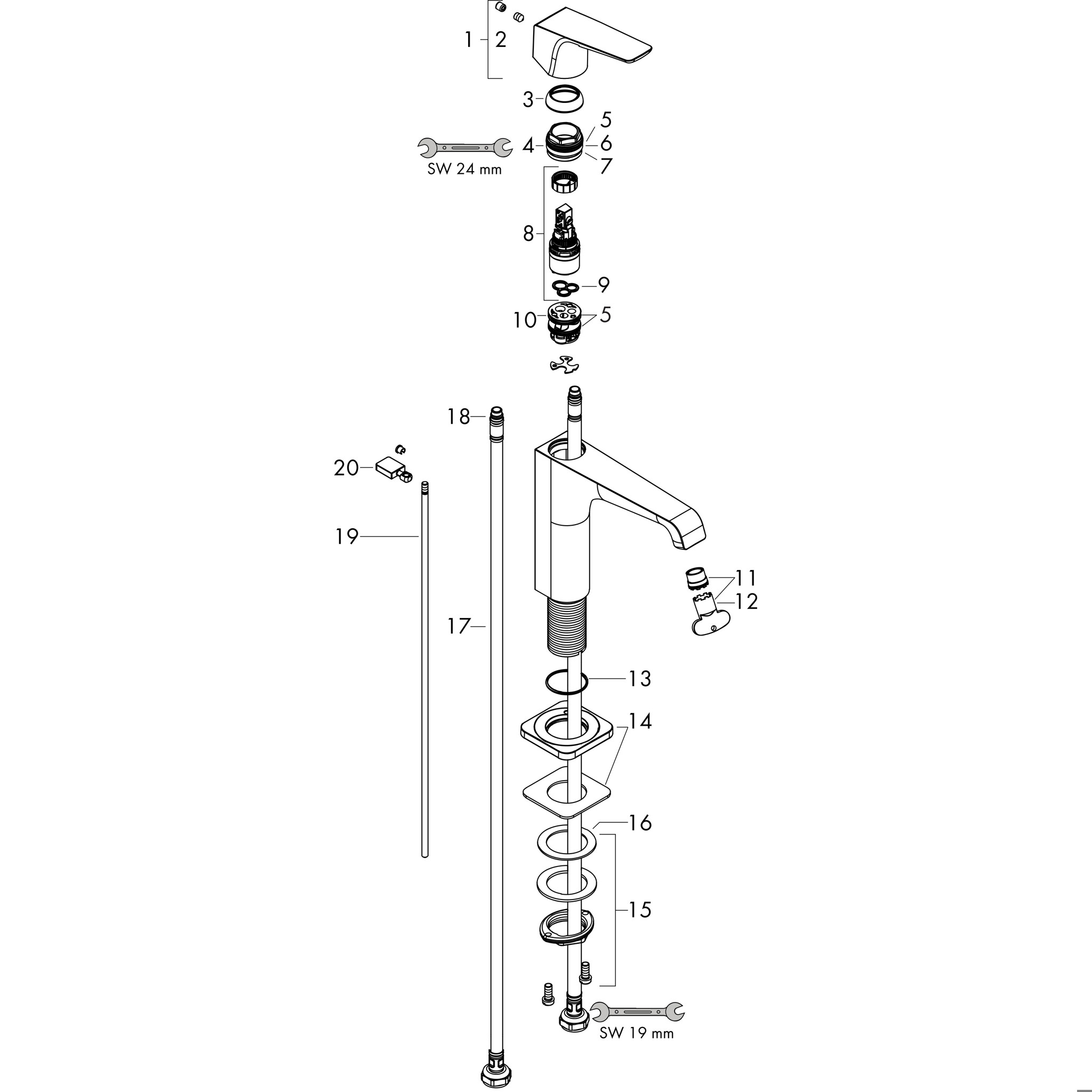 besteht aus: Einhebel-Waschtischmischer, Ablaufgarnitur