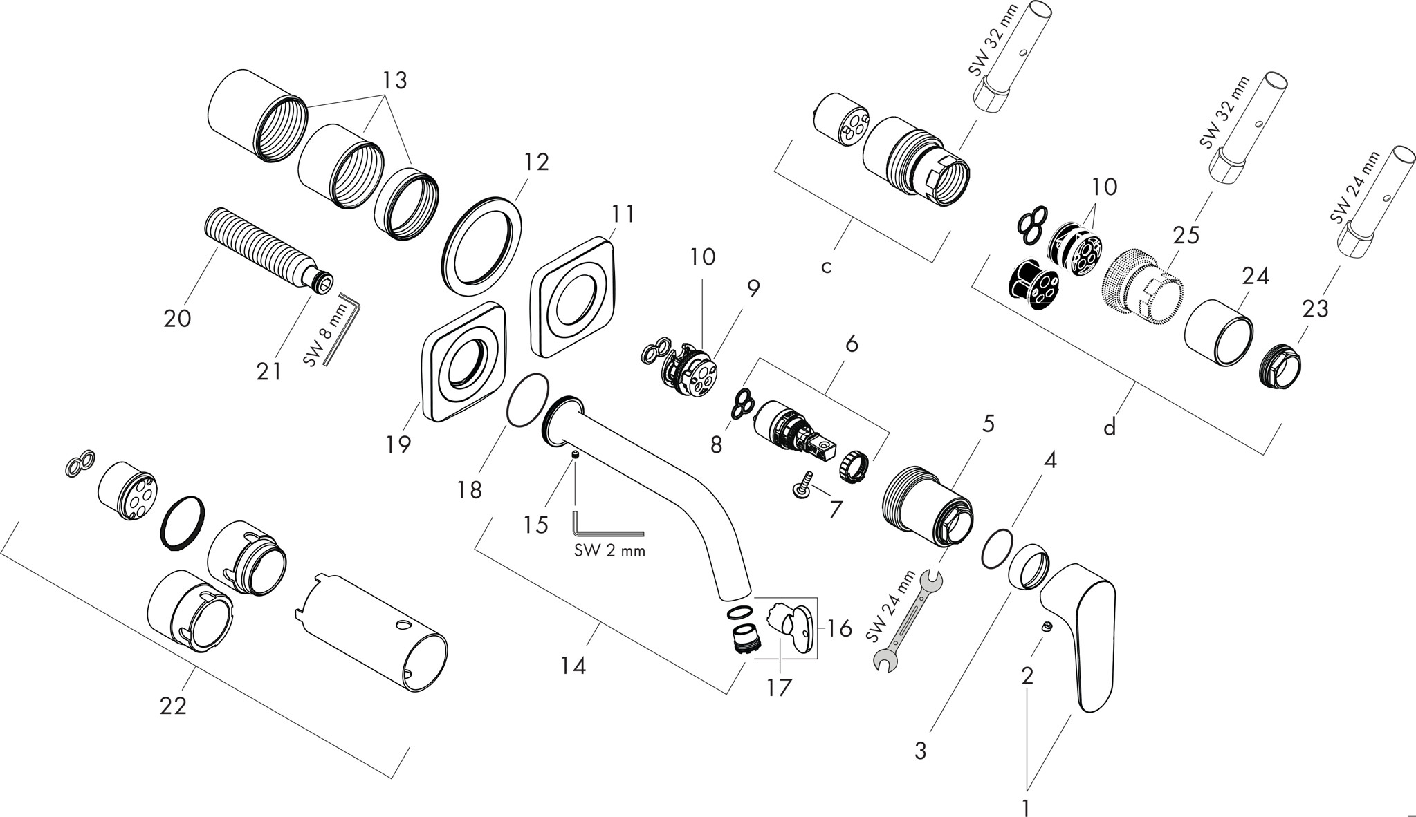 besteht aus: Einhebel-Waschtischmischer Unterputz für Wandmontage, Ablaufgarnitur