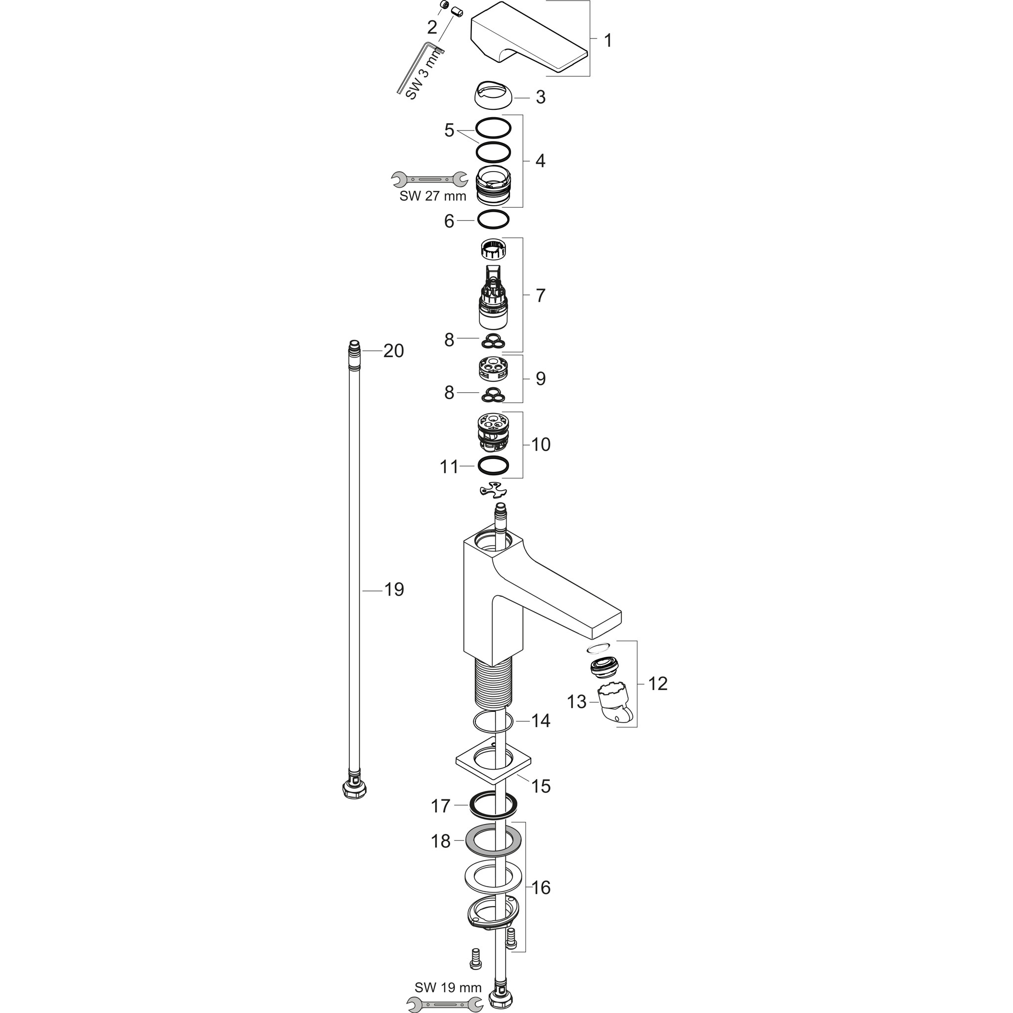 besteht aus: Einhebel-Waschtischmischer, Ablaufgarnitur