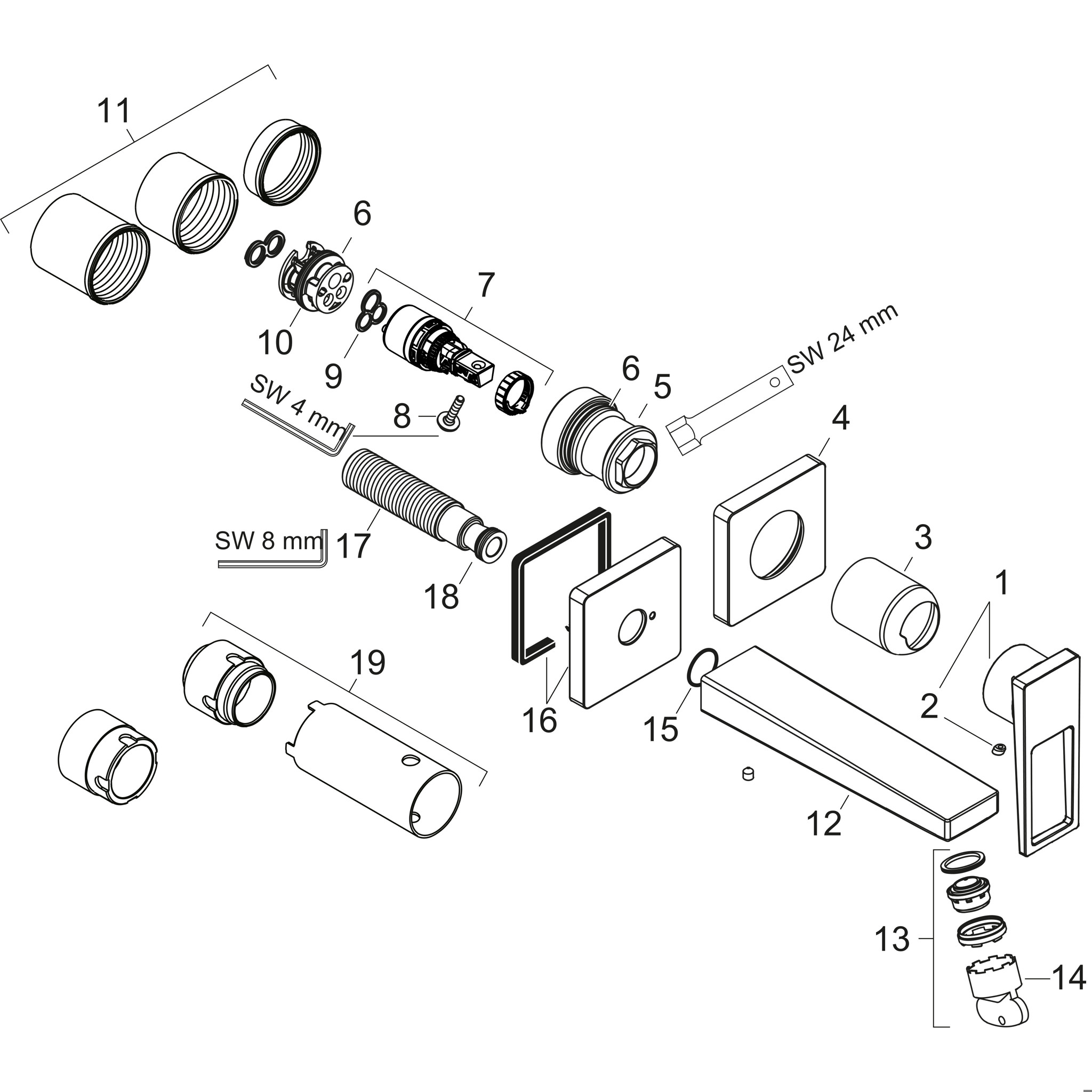 besteht aus: Einhebel-Waschtischmischer Unterputz für Wandmontage, Ablaufgarnitur