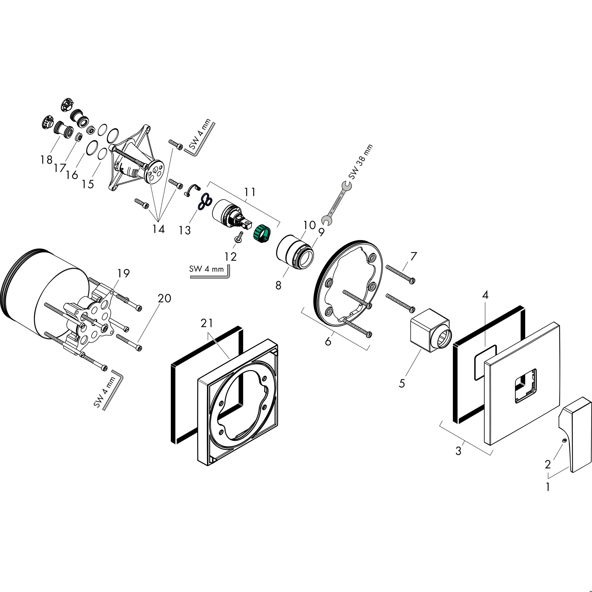 BeschreibungErsatzteile Beschreibung 1 Verbrauchermaximale Durchflussmenge bei 3 bar: 29,3 l/minKeramikmischsystemTemperaturbegrenzung einstellbarmit SchalldämpferGeräuschgruppe: IDurchflussklasse: Bmin. Betriebsdruck: 1 barmax. Betriebsdruck: 10 barAnschlussart: Grundkörper Ersatzteile Zugehörige Artikel Hans Grohe HANSGROHE Keramik Kartusche komplett M3/ M2 #92730000 Hans Grohe HANSGROHE Hülse #93143000 - Chrom Hans Grohe HANSGROHE Rosette 155 / 155 mm #93142000 - Chrom Hans Grohe HANSGROHE Durchflussbegrenzer (22 l/min) #95884000 - Chrom Hans Grohe HANSGROHE Griff #93075000 - Chrom Hans Grohe HANSGROHE O-Ring 54x3 #98436000 Benutzer, die diesen Artikel gekauft haben, haben auch gekauft GEBERIT Duofix Set Wandanker für Einzelmontage #111.815.00.1 GEBERIT iCon WC-Sitz #500.670.01.1 - weiß / glänzend GEBERIT iCon WC-Sitz #574130000 - weiß / glänzend TECE TECEdrainprofile Duschprofil, 1200 mm, Edelstahl gebürstet #671200 TECE TECEprofil WC-Modul mit Uni-Spülkasten, Bauhöhe 1120 mm #9300300 GEBERIT iCon WC-Sitz schmales Design #574950000 - weiß / glänzend DURAVIT WC-Sitz 006989 #0069890000 - Farbe 00, Form: D-shaped, Weiß Hochglanz, Farbe Scharnier: Edelstahl, Überlappend 370 x 431 mm TECE TECEnow WC-Betätigungsplatte für Zweimengentechnik, Schwarz matt #9240407 GEBERIT Rohrbogengeruchsverschluss für Waschbecken, Raumsparmodell, Abgang horizontal #151.107.11.1 - weiß-alpin TECE TECEsquare WC-Betätigungsplatte Glas für Zweimengentechnik, Glas weiß glänzend, Tasten Chrom glänzend #9240802 LAUFEN ILBAGNOALESSI WC-Sitz mit Deckel, abnehmbar, mit Absenkautomatik 485 x 350 x 110 mm #H8929710000001 - 000 - Weiß TECE TECE-Haarsieb für Duschrinnen #660005
