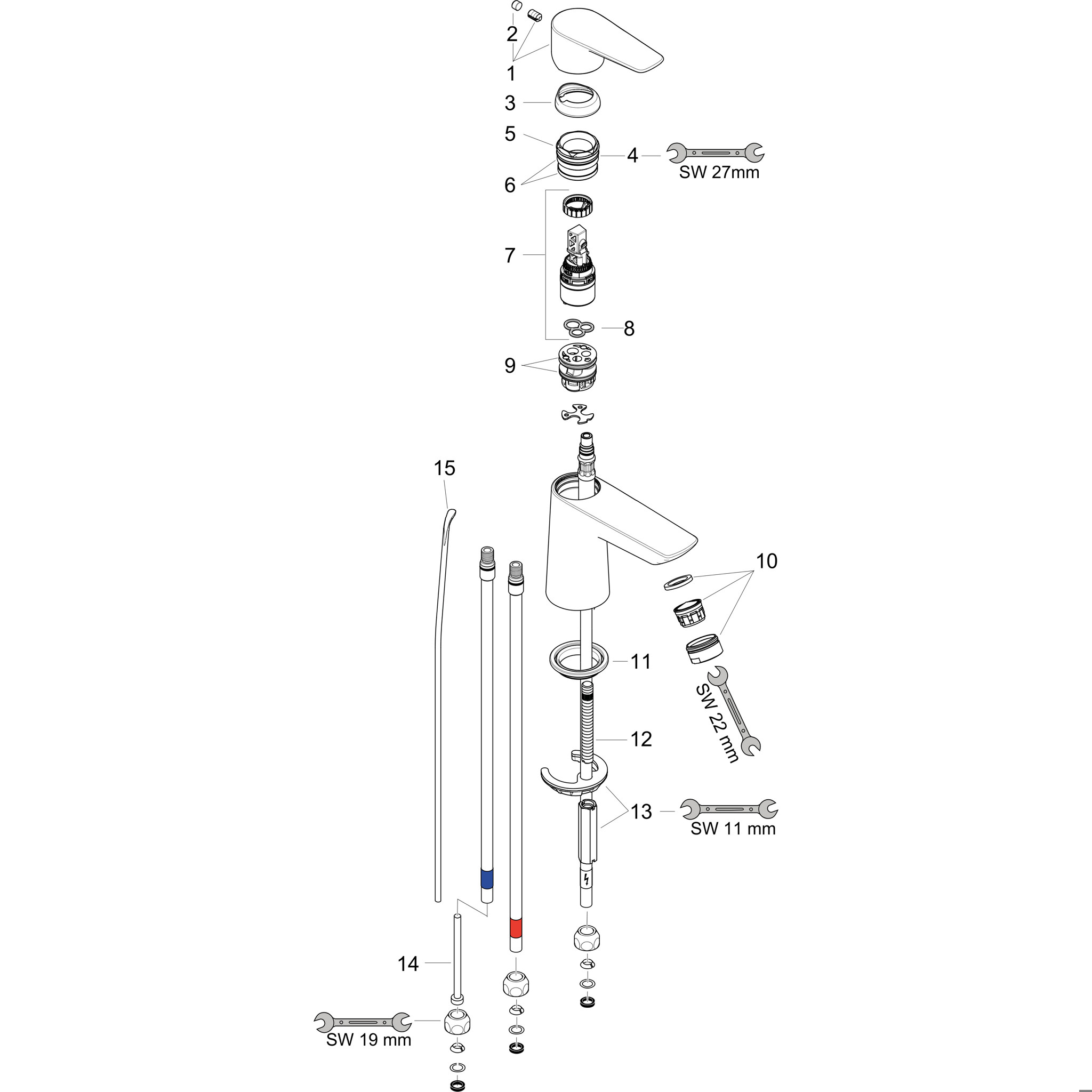 besteht aus: Einhebel-Waschtischmischer, Ablaufgarnitur