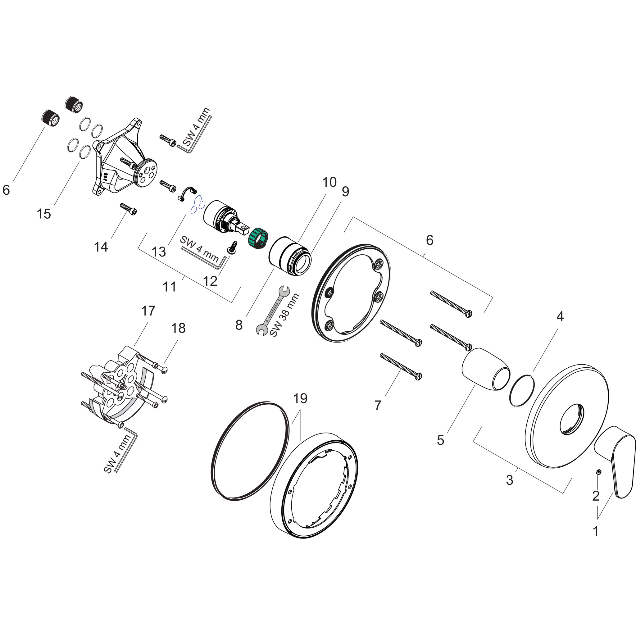 BeschreibungErsatzteile Beschreibung 1 VerbraucherKeramikmischsystemTemperaturbegrenzung einstellbarmin. Betriebsdruck: 1 barmax. Betriebsdruck: 10 barAnschlussart: Grundkörper Ersatzteile