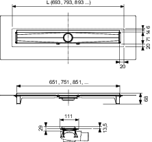 TECEdrainline-Evo Duschrinne mit Wandfliesenauflage Gerader Edelstahl-Rinnenkörper, inklusive werkseitig angebrachter Seal System Dichtmanschette mit Bauzeitschutz zum Einbau an der Wand im Estrich, zur Ausführung eines DIN 18534 konformen Anschlusses der TECEdrainline Duschrinne an die Verbundabdichtung. Bestehend aus: durchgängig geschlossenem Rinnenkörper aus poliertem Edelstahl, Werkstoff 1.4301 (304) mit Wandfliesenauflagefläche Kapillarschutzkante zur Vermeidung von kapillarem Duschwassereintrag unter die Fliesen rückstausicherer Sekundärentwässerung über die glasfaserverstärkte Kunststoff-Hartschale werkseitig angebrachter Seal System Dichtmanschette zur bauseitigen Einarbeitung in die flüssige oder bahnenförmige Verbundabdichtung Bauzeitschutz mit Originalitätssiegel für Edelstahlrinne und Seal System Dichtmanschette Aufnahme zur Montage von optionalen Montagefüßen und zur Verankerung im Estrich Nivellierpunkte (links und rechts) zum Klipsen und zur Ausbildung einer breiteren Estrichabzugskante zum vereinfachten Nivellieren mittigem Rinnenstutzen zum Anschluss des Ablaufs innerem Gefälle zur Verbesserung des Wasserabflusses und Selbstreinigungseffektes Schallschutzstreifen Tauchrohrdichtung optional sekundär entwässerbar Artikelnummer: 601003
