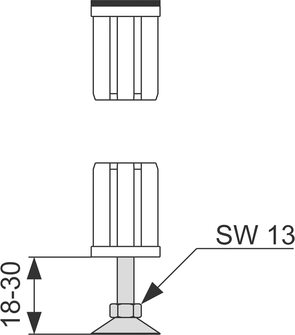 Stellfuß und Endkappe zum Einstecken in ein TECEprofil Profilrohr. Der Stellfuß ist zur Lastaufnahme z. B. zur Abstützung von Stahlwannen geeignet. Es ist kein zusätzlicher Stahlwannenfuß notwendig. Bestehend aus: Stellfuß zur Höhenausrichtung von TECEprofil Profilrohren Endkappe mit Gummiauflage
