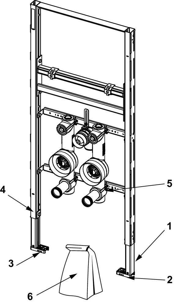 Waschtischmodul zur Befestigung an TECEprofil Profilrohren oder für den Einbau in Metall- oder Holzständerwände und als Vorwand- oder Eckmodul. Komplett vormontierte Einheit bestehend aus: selbsttragendem Montagerahmen, pulverbeschichtet zwei Haltebolzen M 10, höhen- und seitenverstellbares Abstandsmaß HT-Anschlussbogen DN 50, einschließlich Bauschutzstopfen zwei schallgedämmte und absperrbare Rp 3/4" Montageblöcke für Wasserzähler-Messkapseln mit Koax G 2" und Anschluss-T-Stück Rp 1/2" für Eckventile Bitte separat bestellen: Befestigung für die Vorwand-, Eck- oder Holzständermontage (optional) Fertigmontageset für Unterputzventil, verchromt Seal System Baustopfen mit Dichthülse (optional) Behördenoberteil (optional) Universal-Blindrosette für Wasserzähler-Montageblock (optional)